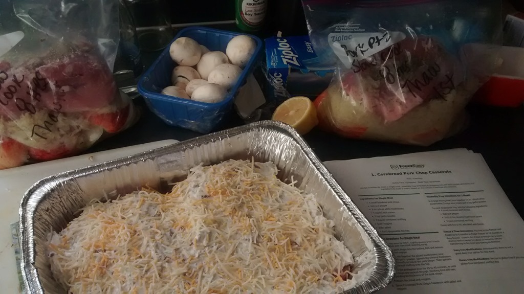 I was delighted at how easily the meals assembled. The vocabulary and instructions on the recipe sheets were simple to follow. I was just going to do 1-2 and take a break, but ended up assembling them all for the freezer, save for one Cornbread Pork Chop Casserole to put in that evening.