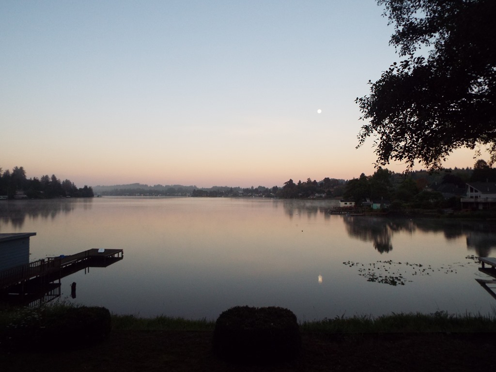 Speaking of observing – we had a spectacular morning on Friday. It was still dusky dark when I woke up, and the twilight was just starting it’s dimmer switch over the lake. The moon was on FIRE. The photo below, surely doesn’t show what my eye saw. Zooming in, the photo above shows more detail. My eye made the moon look even larger than the photo above. I like looking month to month at where the full moon position is, and the time that it crosses the lake in the morning of the fullest full moon period. I’ve yet to grab a great photo of the full moon over the ocean, it usually drops into the fog.