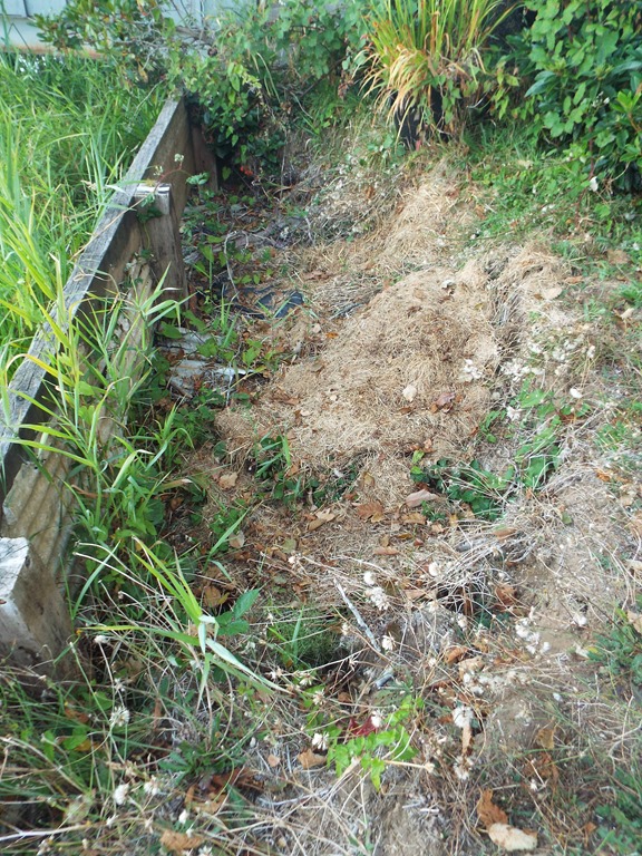 I took pictures of the hole where the roots are. We’ve been dumping lawn debris here to help fill it up.
