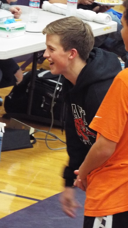 He loves his team and his coach. This is a learning year – so no wins so far. In this weight class, he is wrestling varsity against seniors who have years of experience. Some of them, all the way to elementary school in mat clubs. Crazy.