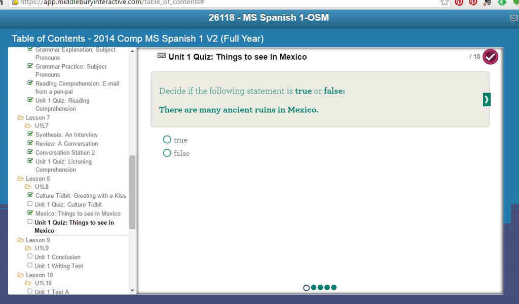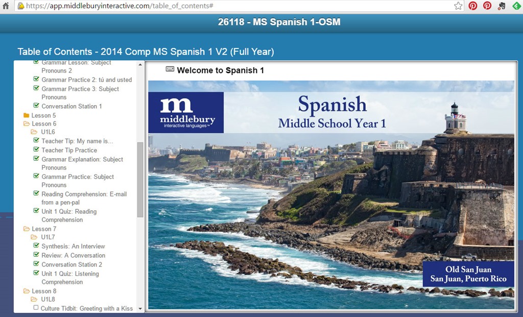 Middlebury Interactive Languages offered us choices of several languages to review with the crew. We chose Middle School Spanish 1 for our 9th grade homeschooled son. Why didn’t we choose High School? Because Middlebury’s classes are a bit advanced. Last year we chose High School Spanish 2 to help a teen who had completed Spanish 1 at our local High School, and level 2 was way beyond where he found comfort, too difficult a challenge.